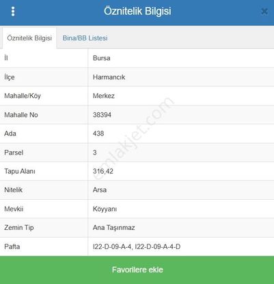- BURSA HARMANCIK MERKEZ'DE 4 KAT İMARLI 316 M2 SATILIK ARSA