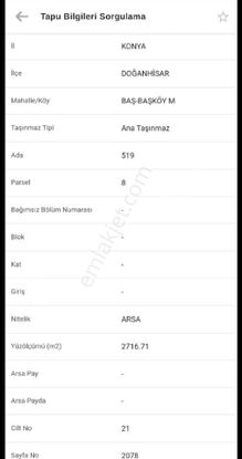 Sahibinden Doğanhisar Baş Başköy Mahallesi Arsa
