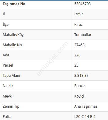 Sahibinden İzmir Kiraz Da Köyiçi Müstakil Arsa