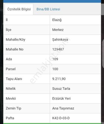 - Elazığ Merkez Satılık Tarla>