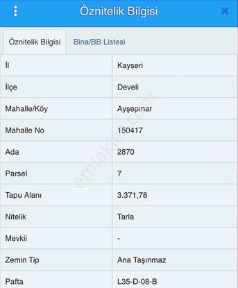 - Develi Satılık Tarla>