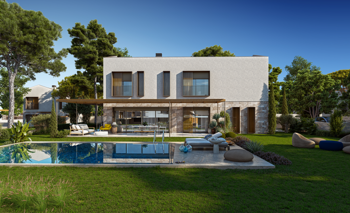 Folkart Terra Çeşme’de 485 m2 – 585 m2 arasında değişen parsellere yerleştirilmiş, farklı tiplerde 77 villa yer alıyor. 3+1 Dubleks, 4+1 Dubleks ve 4+1 Geniş Dubleks seçenekleri bulunan villalar, Çeşme keyfini müstakil bir konforda yaşamak isteyenlere prestijli bir yaşam sunuyor.