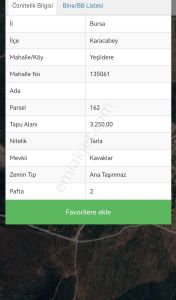araması için 9 ilan bulunduKaracabey Yeşildere Mahallesi Satılık Arsa Fiyatları
